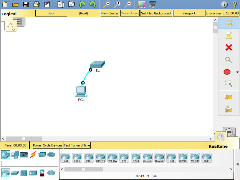 - 콘솔 케이블의 반대쪽 끝을 S1 스위치로 드래그한 후, 스위치를 클릭하여 연결 목록을 불러옵니다.