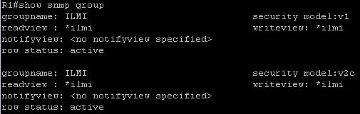 - 아래 그림을 보면 groupname: ILMI라는 그룹이 security model: v1과 v2c 두 가지 방식으로 활성화(active)되어 있는 것을 확인할 수 있습니다.